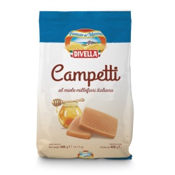 Нежное итальянское печенье Divella Campetti с натуральным мёдом — идеальное лакомство к чаю или кофе. Традиционный рецепт из отборной пшеницы и высококачественных ингредиентов без пальмового масла. Печенье обладает приятным ароматом и мягкой текстурой, оставляя лёгкое ощущение домашней выпечки.