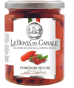 Вяленые томаты Bella Contadina делают из отборных спелых плодов, которые нарезаются на половинки и высушиваются на свежем воздухе. После завершения процесса сушки, томаты укладывают в банки и заливают оливковым маслом, посыпаются пряными травами. Мягкая текстура и насыщенный вкус делают их идеальным ингредиентом для многих блюд.