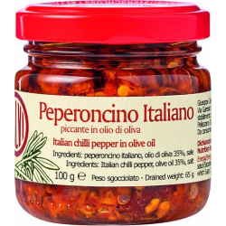 Острый итальянский перец пеперончино в ароматном подсолнечном масле — изысканная закуска и универсальная приправа от бренда Dilillo. Насыщенный вкус, яркий аромат и умеренная острота делают его идеальным акцентом для блюд итальянской кухни.