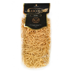 Итальянские макаронные изделия F.lli Mascolo Bucatini — классика из города Граньяно, признанного родиной лучшей пасты в мире. Изготовлены из отборной пшеницы твердых сортов по традиционной технологии Trafilata al bronzo, благодаря которой поверхность пасты становится слегка шероховатой и идеально удерживает соус.