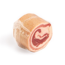Панчетта аль Пепе Неро из итальянской свинины без кожицы и слегка обезжиренная. Его солят и оставляют на несколько дней, затем намазывают легким вуалью свежего чеснока, затем сворачивают и завязывают. Наконец, панчетту посыпают цедрой черного перца, что делает ее ароматной, но не острой, и кладут в оболочки. Его ждет приправа, которая длится 80 дней. Уникальный по аромату и округлому вкусу, очень сладкий и аппетитный. Его мягкая текстура обеспечивает максимальное таяние, удовлетворяя самых требовательных гурманов.