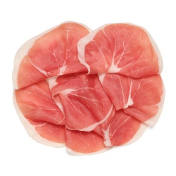 Прошутто Крудо DOP - Итальянская сыровяленая ветчина, выдержанная в сухом виде до совершенства. Пармская ветчина никогда не подвергается тепловой обработке, отсюда и название Крудо, что по - итальянски буквально означает высушенная. Продукт абсолютного совершенства, обладающий множеством граней вкуса.