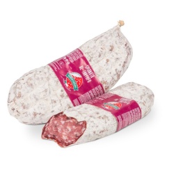 Итальянская салями Mezzena “Strolghino” — 200 г — мини-салями, приготовленное по традиции из отрубков свинины (обычно самых нежных частей), с короткой выдержкой, что придаёт ей мягкий и нежный вкус.