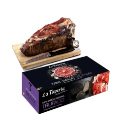Хамон Серрано с трюфелем La Taperia – это гастрономическая жемчужина испанской кухни. Сочетание нежного хамона и благородного трюфеля создает уникальный солоноватый вкус и грибной аромат, который оценят истинные гурманы. Мраморное мясо с розовым оттенком и плотной текстурой тает во рту, оставляя долгое послевкусие. Этот деликатес станет отличным подарком для близких и друзей, так как продается в красивой картонной упаковке, а в набор к мясу идет деревянная доска и нож.