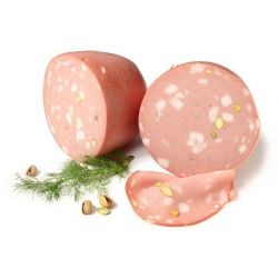 Мортаделла с фисташками - великолепная вареная колбаса (мясное ассорти). Входит в пятерку знаменитых итальянских колбас.