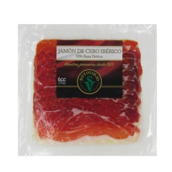 Премиальный испанский деликатес — Paleta de Bellota 100% Ibérica (плечо иберийской свиньи высшей категории), выращенной на желудях (bellota), выдержанный и тонко нарезанный. Этот продукт принадлежит к элитной категории хамона и отличается насыщенным ароматом, плотной текстурой и мягким, деликатным вкусом. Без глютена.