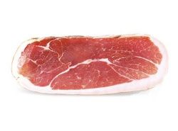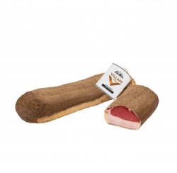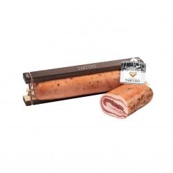 Панчетта аль Пепе Неро из итальянской свинины без кожицы и слегка обезжиренная. Его солят и оставляют на несколько дней, затем намазывают легким вуалью свежего чеснока, затем сворачивают и завязывают. Наконец, панчетту посыпают цедрой черного перца, что делает ее ароматной, но не острой, и кладут в оболочки. Его ждет приправа, которая длится 80 дней. Уникальный по аромату и округлому вкусу, очень сладкий и аппетитный. Его мягкая текстура обеспечивает максимальное таяние, удовлетворяя самых требовательных гурманов.