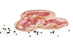 Панчетта с трюфелем – это сыровяленая свиная грудинка, одна из разновидностей итальянского бекона. Для приготовления продукта специально выращивают свиней особой породы. Но используется сырье только с брюха животного. Деликатес обладает классическим мясным ароматом и немного пикантным привкусом.