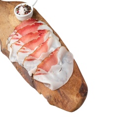 Брезаола делла Вальтеллина – это итальянское вяленое мясо, которое производится в долине Вальтеллина в Ломбардии. Брезаола обладает нежным, слегка солоноватым вкусом с легкими нотками пряностей. Аромат у нее насыщенный, с оттенками говядины и специй. Текстура – плотная, но в то же время нежная, с небольшими прожилками жира.